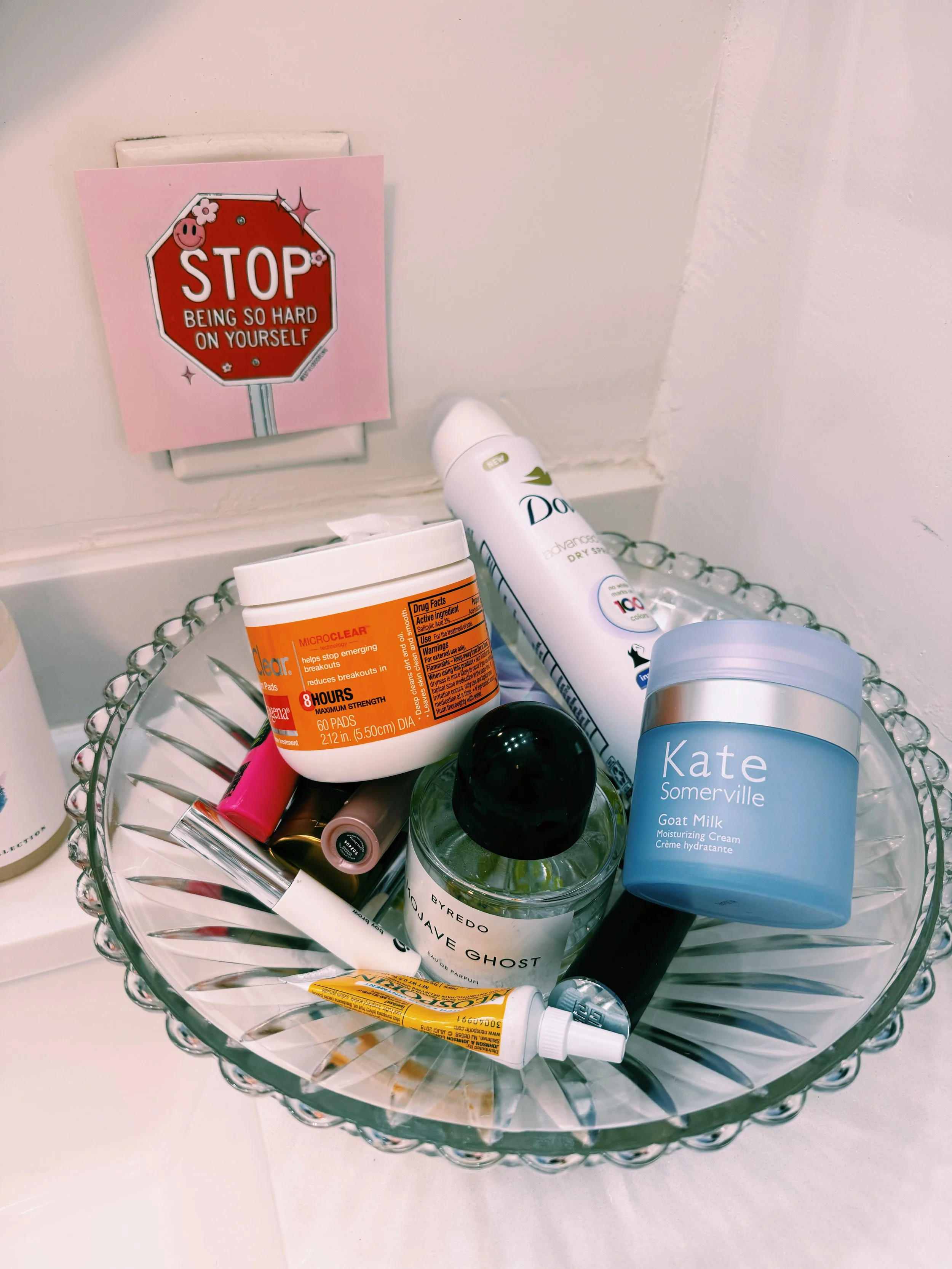 I recently have become fascinated with the idea of having a toiletry bowl on the bathroom counter. This naturally sparked a full blown convo with my girlfriends around how we all operate day to day when getting ready.