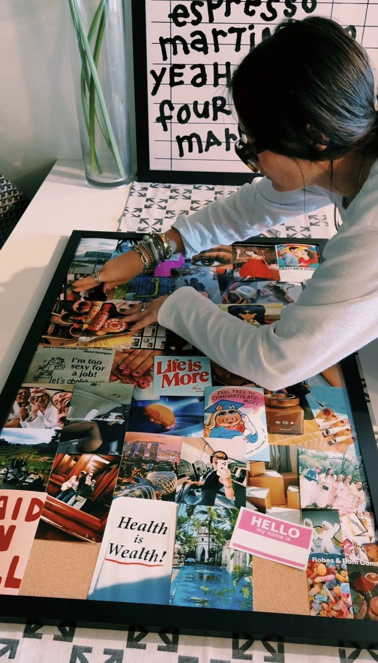 I am a firm believer in the power of vision boards.many moons ago I used to think they were a bit silly and a waste of time but then I grew up lol. As an incredibly visual person it is so nice to see and walk past your goals every single day. Mine is posted up right in my entry way and is my phone and work laptop background. It helps change your mindset and allows you to visualize these goals as if they have already happened. You can begin to picture yourself there, doing the thing, checking the box, drinking that specific wine and it’s quite magical.